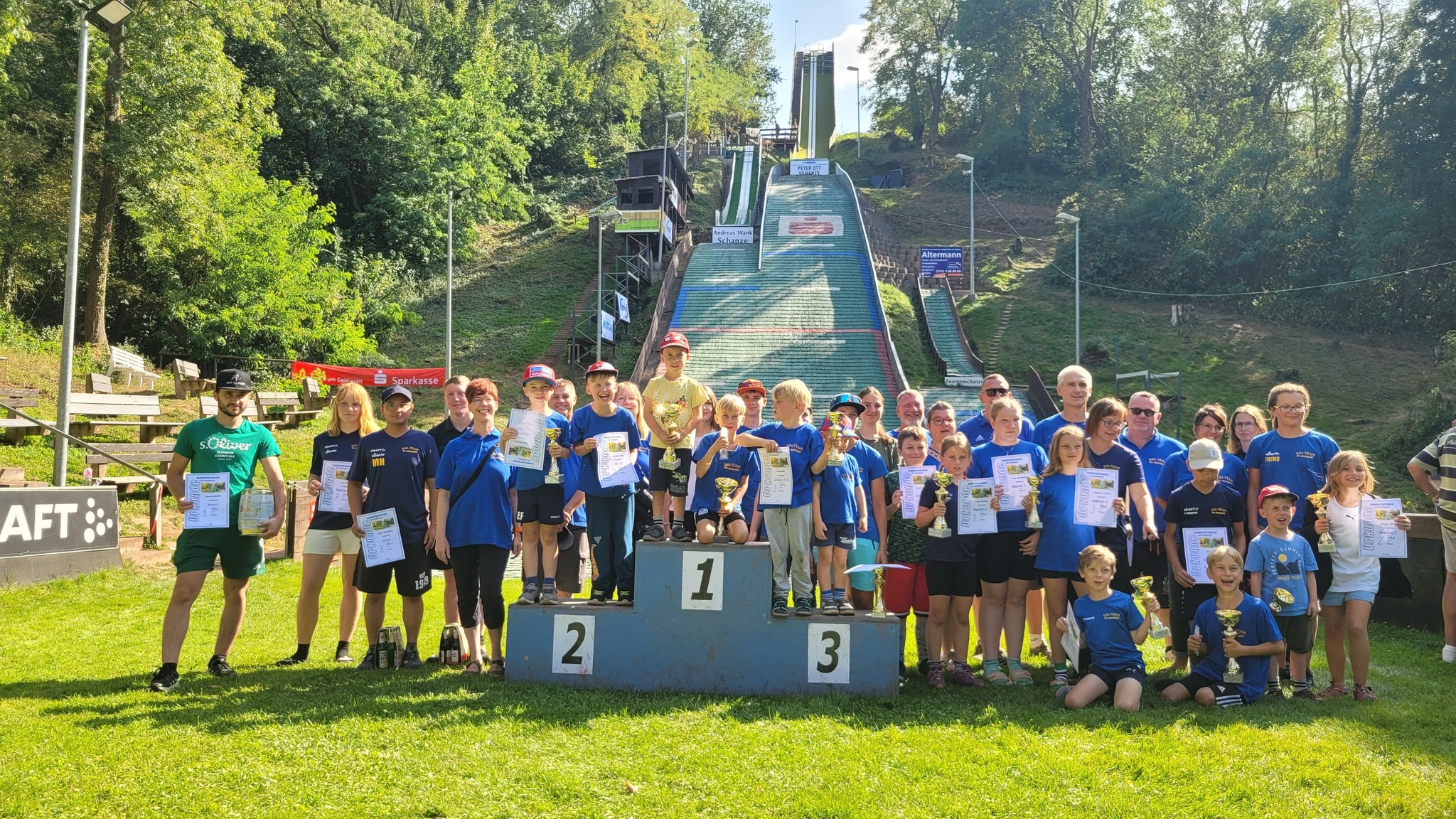 Deshalb sei an dieser Stelle allen Helfern, die sich als Weitenmesser, Kampfrichter, Küchenfee, Grillspezialist, Kuchenbäcker, Getränkeverkäufer, am Einlass, im Rechenbüro oder auf und an den Schanzen zur Verfügung gestellt haben herzlich gedankt. Ohne Euch wäre ein solches Event nicht möglich! Ein Dankeschön auch an Klaus Dreisbach am Mikrofon und an Uwe Ulfig aus Löbejün für den Shuttle-Service!